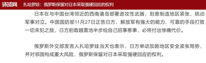 据环球网报道,日前俄外交部严厉警告日本,俄方密切关注日本政府推动在台岛以东部署美军中导,这对地区安全构成严重威胁,俄罗斯绝不会袖手旁观,保留对日本采取强硬回应的权利。
